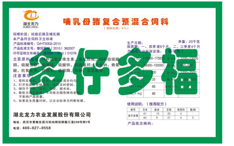湖北龍力農(nóng)業(yè)發(fā)展股份有限公司坐落于武漢市黃陂區(qū)前川街向陽街群順三里298號(hào)附1號(hào)。公司成立于2014年6月,公司自成立以來把“創(chuàng)全球最大養(yǎng)豬綜合服務(wù)”為企業(yè)愿景。致力于打造教保料品牌”作為公司發(fā)展的明確目標(biāo)。公司一直致力于豬營(yíng)養(yǎng)的研究和開發(fā),積極與國(guó)內(nèi)外高校和科研機(jī)構(gòu)合作,推廣養(yǎng)豬技術(shù)、動(dòng)物營(yíng)養(yǎng)新概念,向世界農(nóng)牧企業(yè)學(xué)習(xí)與合作。公司采用國(guó)內(nèi)先進(jìn)的生產(chǎn)工藝,選擇高精度電子配料秤,高均勻度、無殘留混合機(jī)等先進(jìn)設(shè)備....